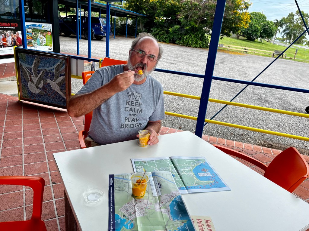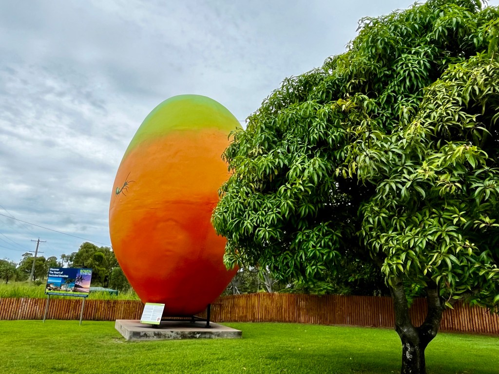 Our destination was Townsville but we always find a place or two to stop along the way and today’s was determined by a giant mango! Turns out the town of Bowen invested in building a giant mango to attract tourists and it worked – we visited! And stayed for quite a while as we explored the interesting town. (Note that mango trees are grown here).
