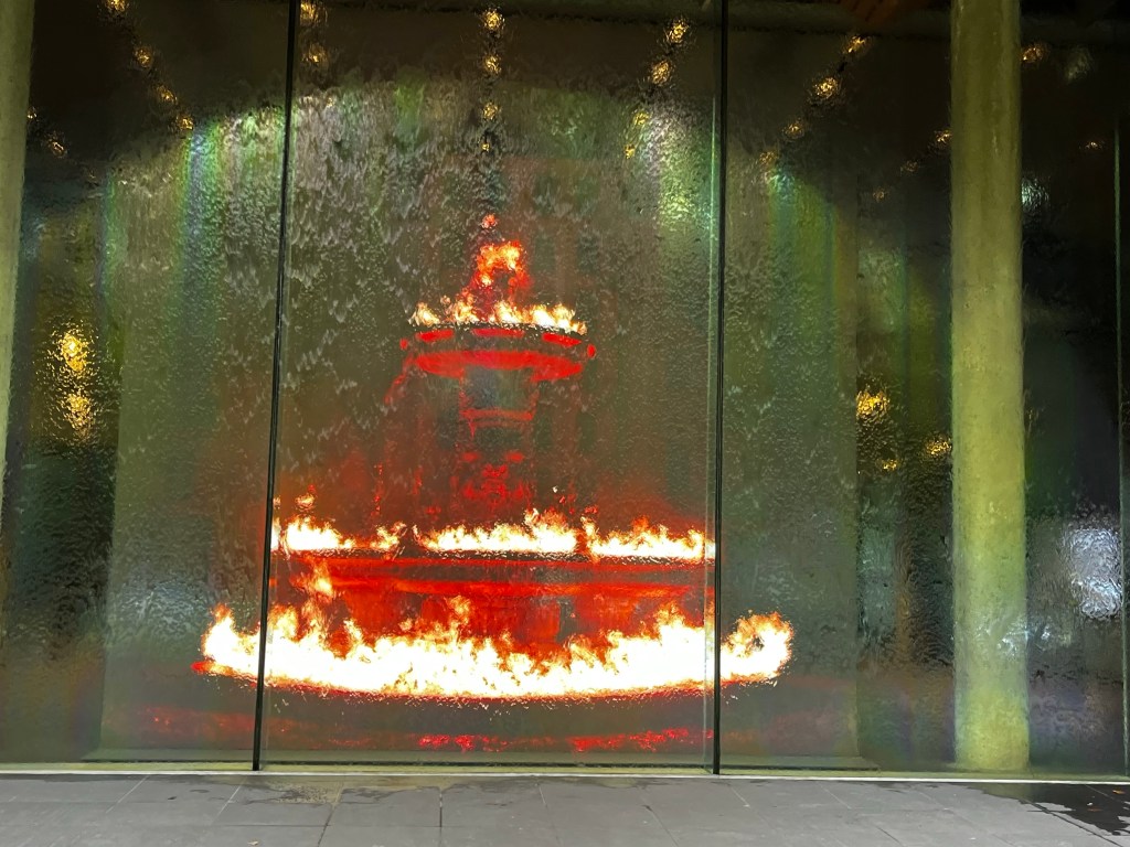 We enjoyed an Indonesian dinner and then walked down the same road to see some night time lights.
