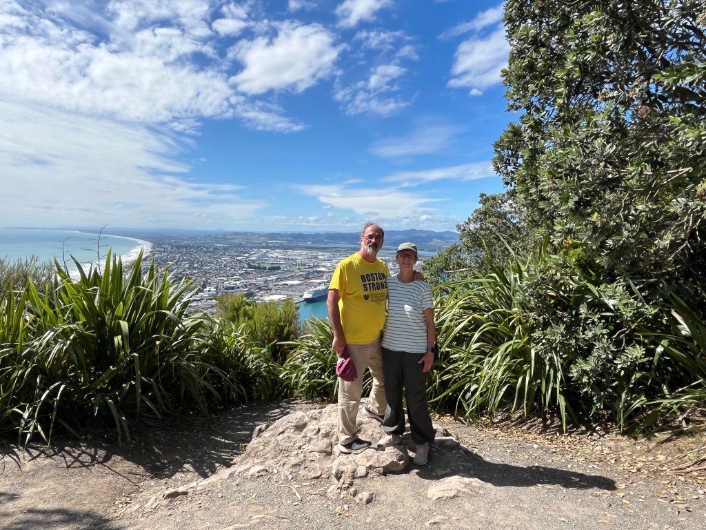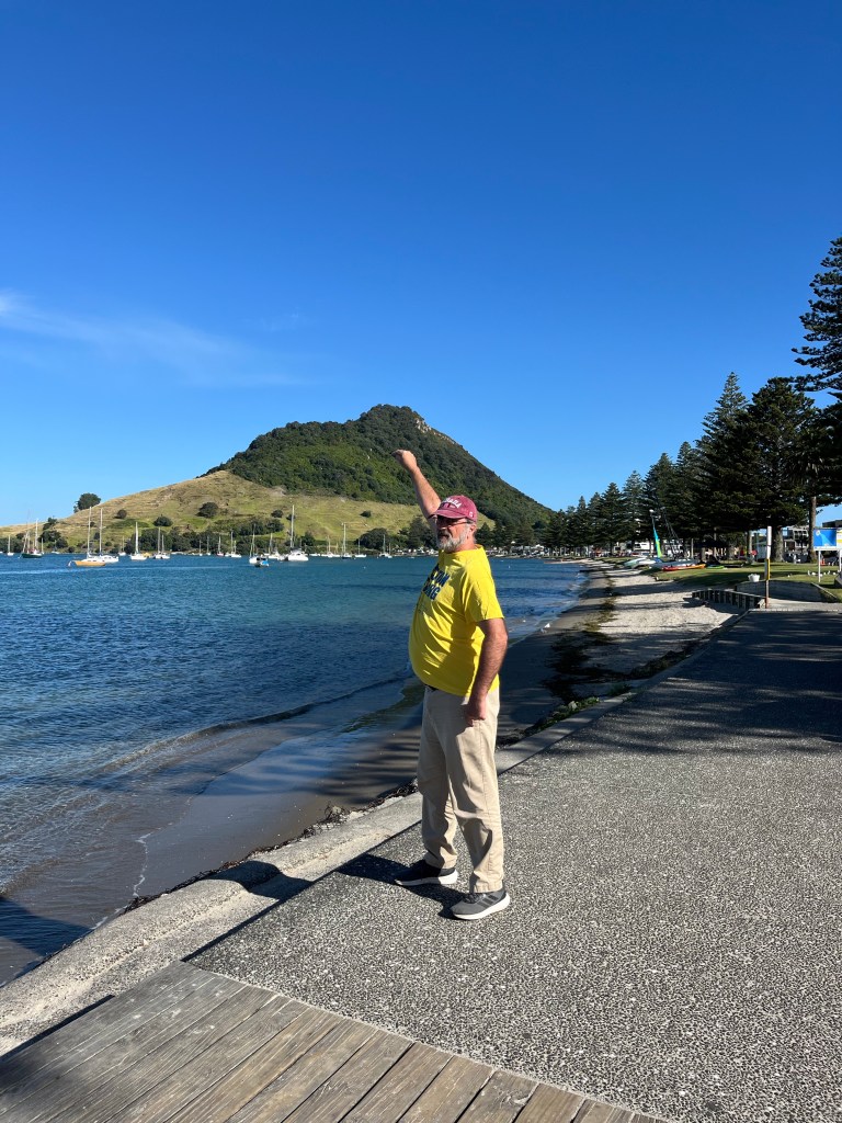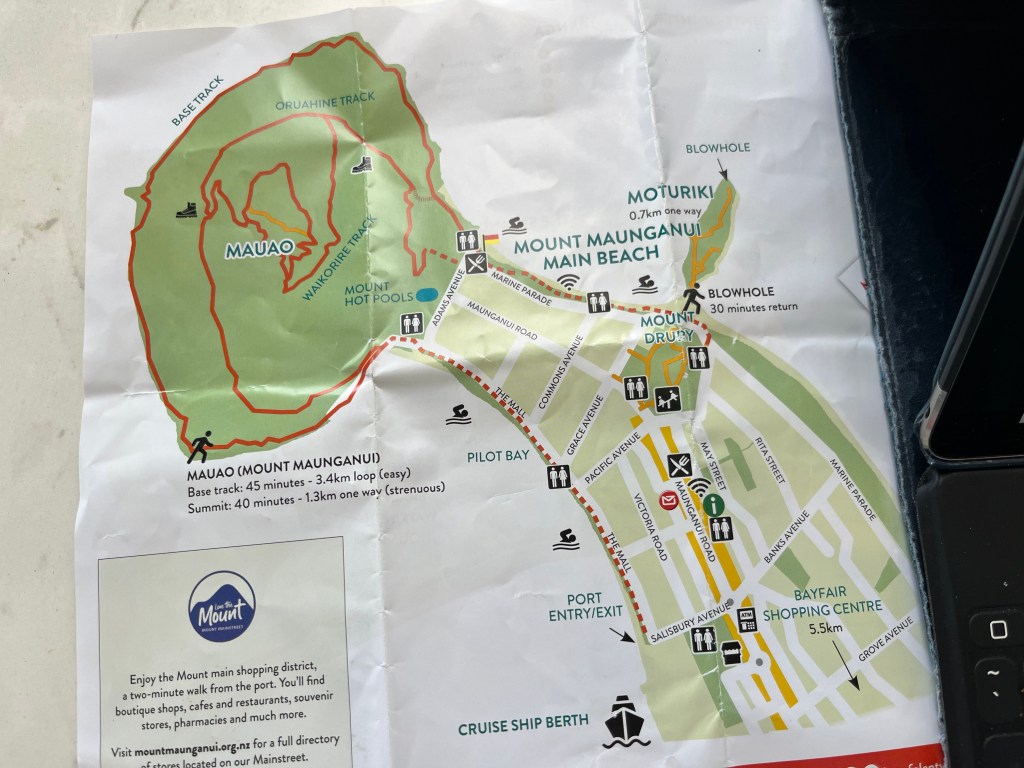 We are in greater Tauranga area but docked in Mount Maunganui village – a tourist peninsula with beaches on both sides and a large mountain at the end. This is an ideal location for tours to hot springs and other adventures appropriate before reaching our final destination of Auckland. However since we will have a number of days in the Auckland area we just wanted to enjoy this area today.