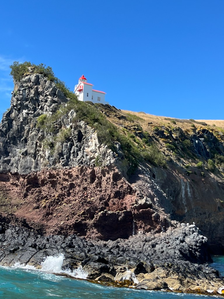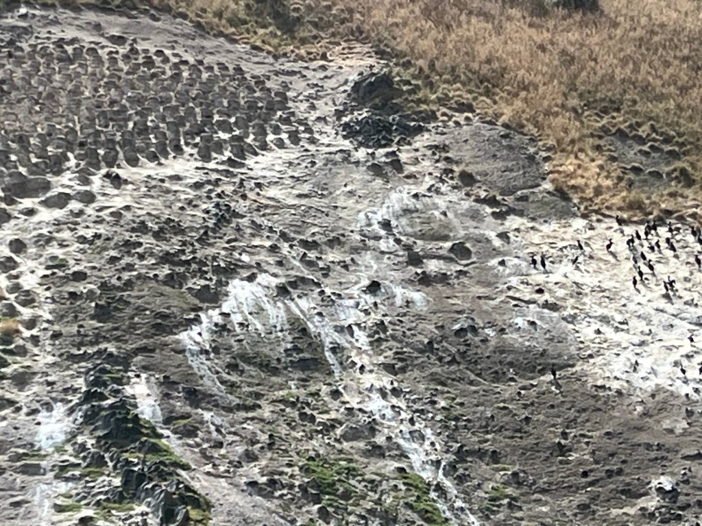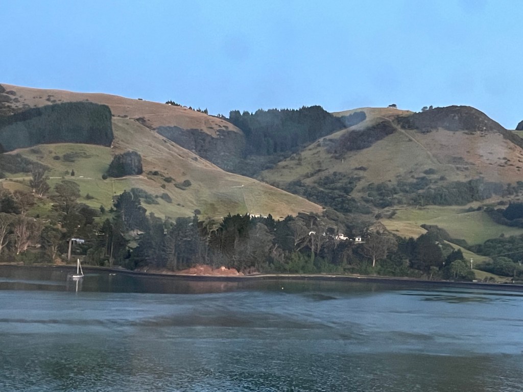 One of the main goals was to see Albatross which are often seen flying from the mountain next to the opening of the harbor. Our guide did her best to circle around and wait for one to come off the cliff, but it wasn’t very windy and that’s what they usually wait for before taking off. (They soar and glide, versus flapping wings and head out in the ocean and hunt for days before returning).
