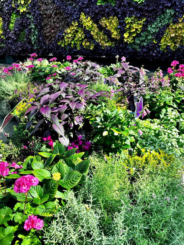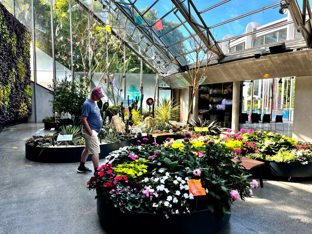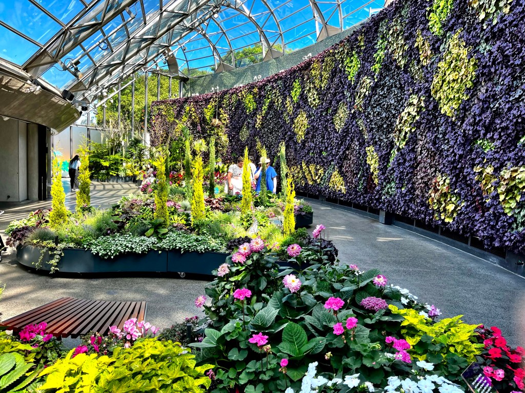 A large modern research enclosure was at one end with educational displays of different plant species such as orchids. The wall overing was made of patterned, live leaves.