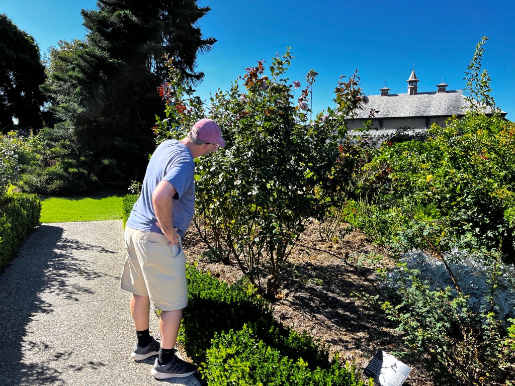 As we were leaving the gardens Dirk was happy we found the rose garden area. There were many varieties to be sniffed but some were past their prime.