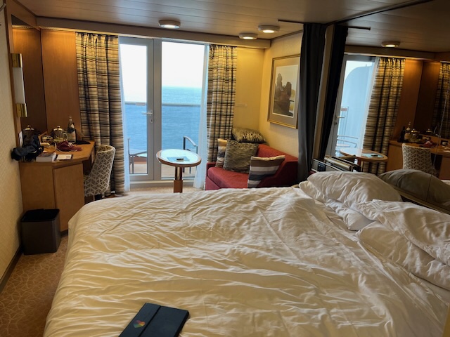 For some reason I couldn’t get Uber to work for our trip to the ship – hope I can get it to work later – taxis are so expensive. Anyway, we got blessed to get onboard (checking for passports, visas, etc multiple times) and found our cabin. It’s a little smaller than expected but with the outside veranda I’m happy!