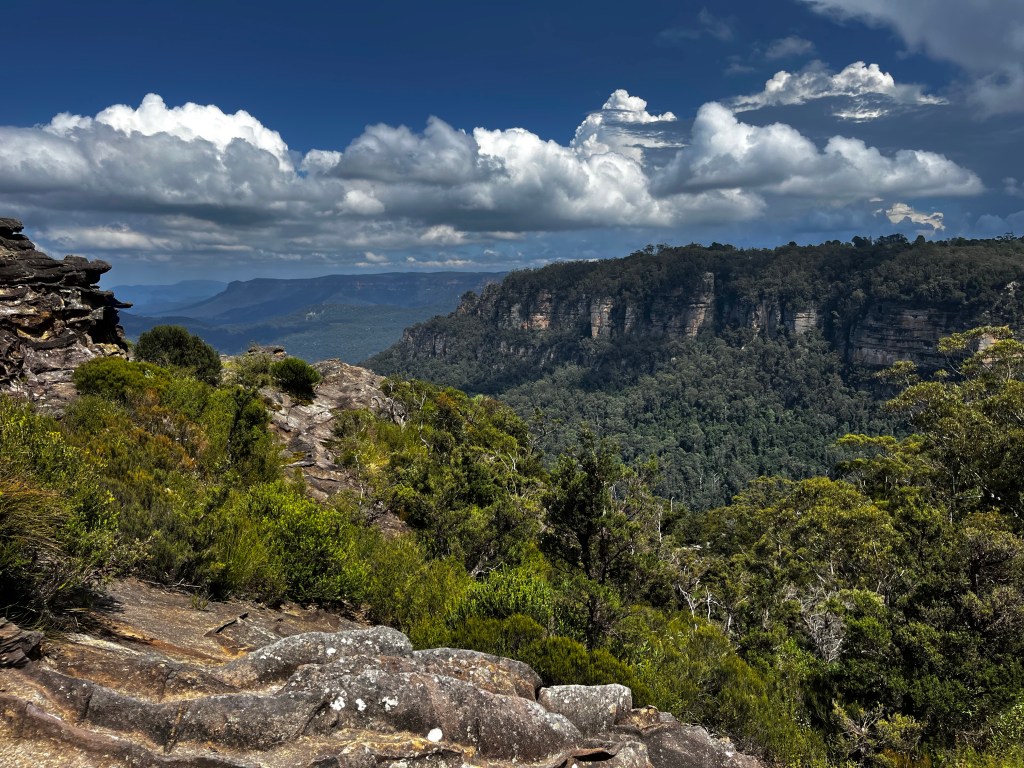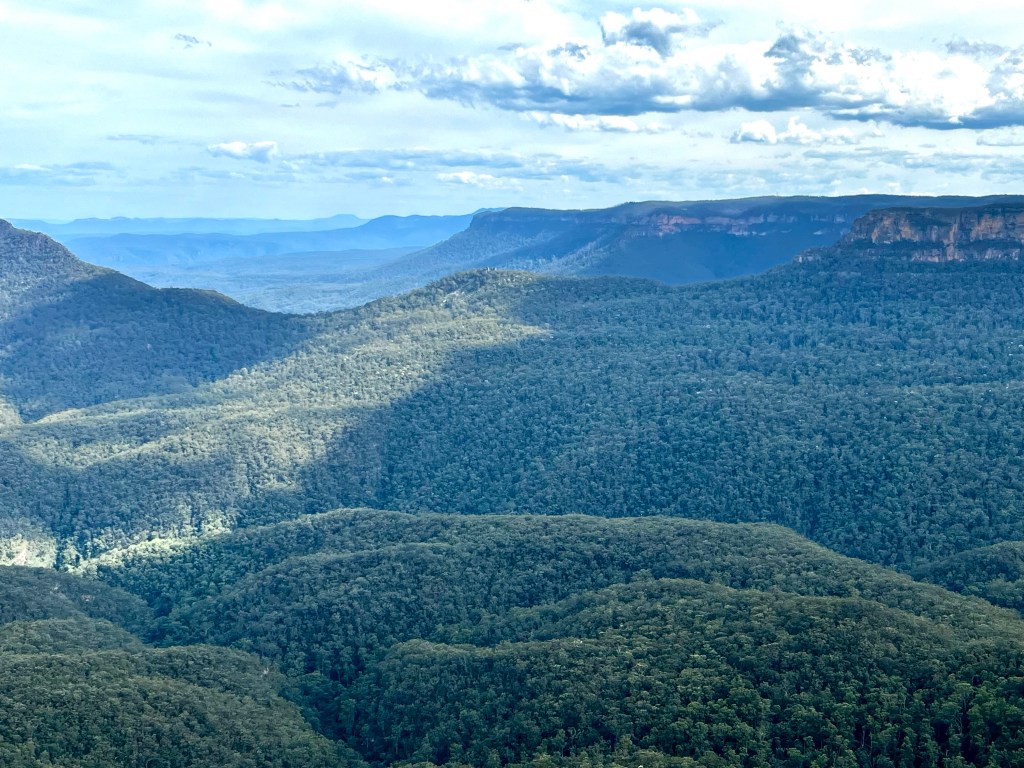 After taking in the huge views we decided to walk a cliff trail to Katoomba Falls, about a 30-45 minute walk. All along the way the views continued… But Katoomba Falls was tiny, but there were cockatoos everywhere!